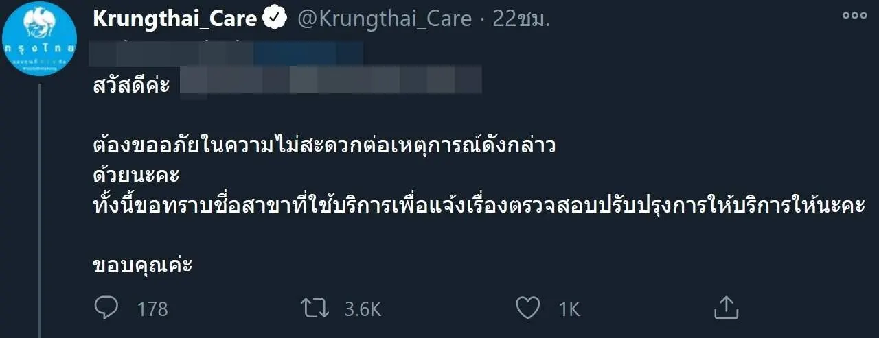 ธ.กรุงไทยรีบเข้ามาขอโทษแล้วสอบถามทันที