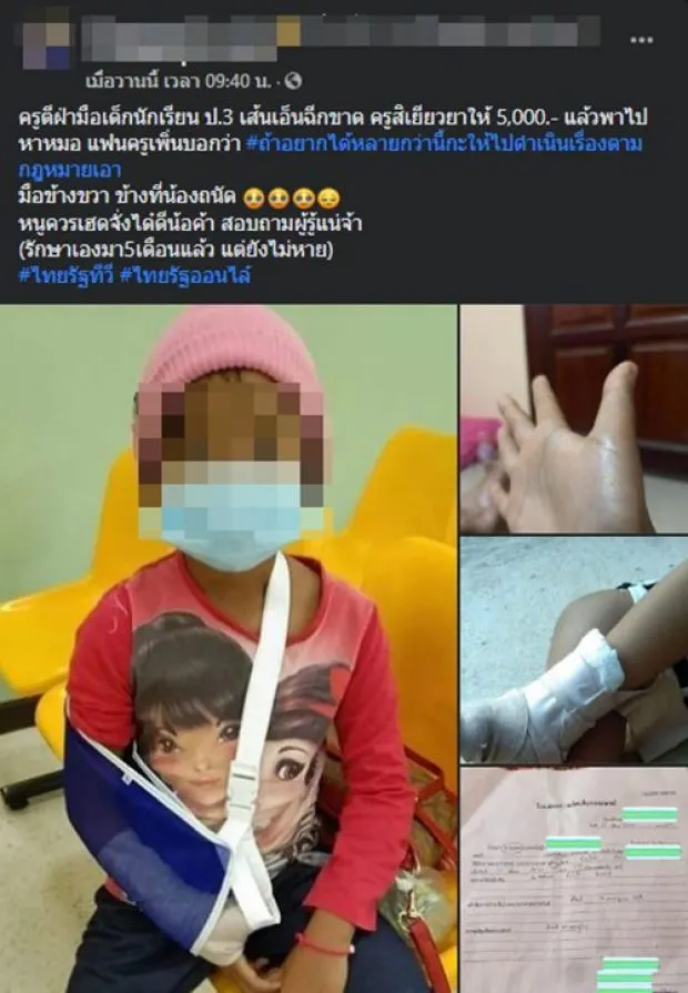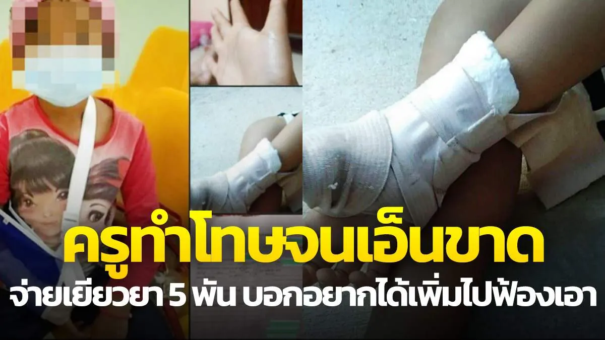 ครูทำโทษเด็ก ป.3 จนเอ็นขาด รักษา 5 เดือนยังไม่หาย จ่ายเยียวยา5พัน อยากได้เพิ่มไปฟ้องเอา