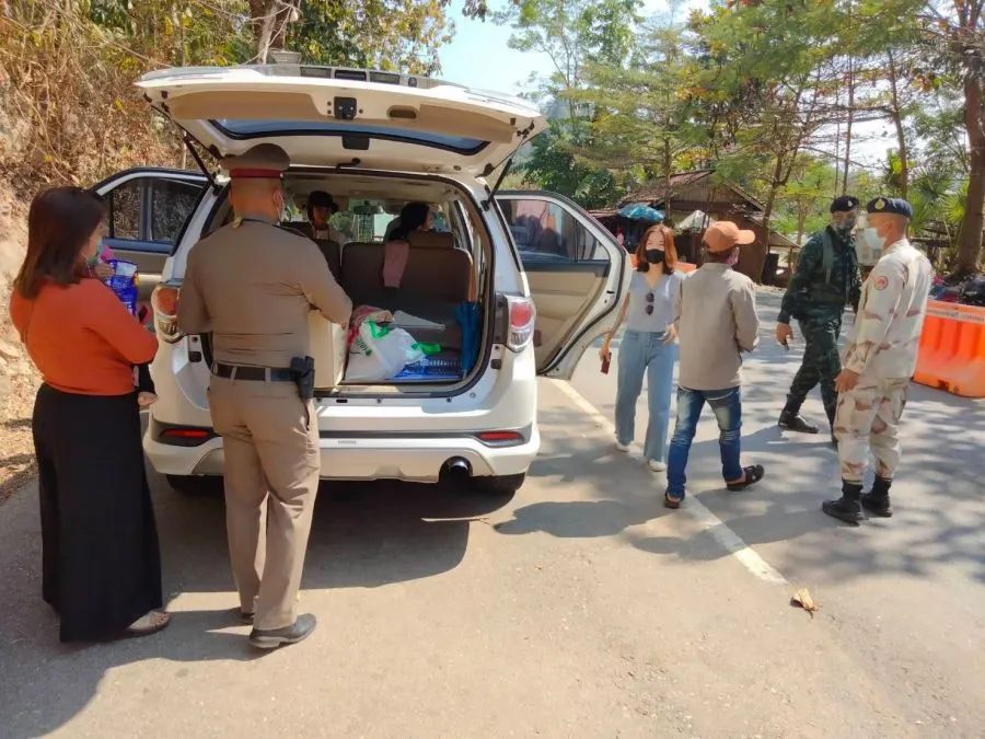 ขณะที่เวลาเดียวกัน เจ้าหน้าที่ยังได้ตรวจค้น รถยนต์โตโยต้า ฟอร์จูนเนอร์ สีขาว หมายเลขทะเบียน กต 37 กาญจนบุรี มีนางสาวอัจฉรา ชินสรนันท์ อายุ 40 ปี ชาวจังหวัดราชบุรี เป็นคนขับ ตรวจค้นภายในรถ พบนายซอ มิน โบ ชาวเมียนมาร์ อายุ 42 ปี ซุกซ่อนตัวอยู่บริเวณเบาะที่นั่งแถวที่สาม โดยใช้ผ้าห่มคลุมตัวเอาไว้ สอบถามนางสาวอัจฉรา ให้การว่า ได้ขับรถมาจากอำเภอด่านทับตะโก จังหวัดราชบุรี มารับนายซอ มิน โบ ซึ่งเคยทำงานเป็นลูกจ้างของตน มาจากตลาดอำเภอสังขละบุรี เพื่อเดินทางกลับไปทำงานที่ร้านของตนในจังหวัดราชบุรีตามเดิม เบื้องต้น เจ้าหน้าที่ ได้ทำการตรวจวัดอุณหภูมิของแรงงานต่างด้าวชาวเมียนมาร์ที่ถูกจับกุมทั้งหมด พบว่าไม่มีรายใดมีอุณหภูมิร่างกายเกิน 37.5 องศา จากนั้น จึงควบคุมตัวผู้กระทำผิดทั้งหมด ส่งพนักงานสอบสวนสถานีตำรวจภูธรสังขละบุรี ดำเนินคดีตามกฎหมายต่อไป