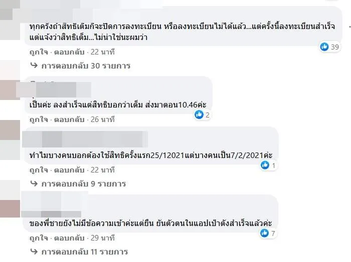 กำลังเช็คให้นะครับ ว่า คนละครึ่ง ลงสำเร็จแล้ว แต่ sms เพิ่งแจ้งว่า ไม่สำเร็จ ใครเป็นบ้าง