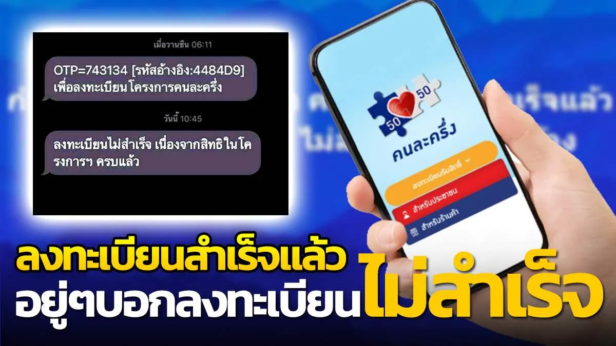โวยทั้งประเทศ!! ข้อความจาก "คนละครึ่ง" ส่งมาบอกว่า "ลงทะเบียนไม่สำเร็จ"