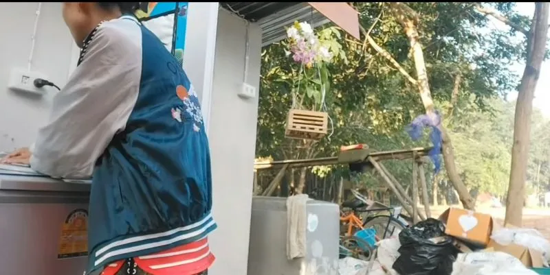 หันมาเจอกล้องเอาของลงพื้นแล้วเดินหายไปเลย