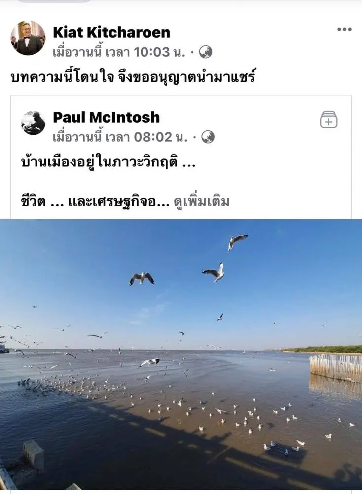 พร้อมกับแชร์ข้อความของ Paul McIntosh ซึ่งระบุเอาไว้ว่า
