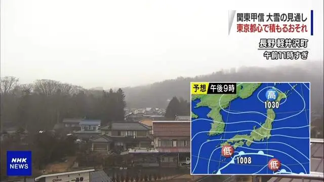 ในช่วง 24 ชั่วโมงถึงเช้าวันอาทิตย์ คาดว่าจะมีหิมะสูงถึง 20 เซนติเมตร ในบริเวณคันโตรวมเจ้าหน้าที่พยากรณ์ ขอให้ประชาชนเตรียมพร้อมสำหรับ การจราจรที่ติดขัด หรือ หยุดเดินรถไฟ อาจเกิดขึ้นเนื่องจาก หิมะที่สะสมรวม จนถนนเป็นน้ำแข็ง พวกเขายังเตือนด้วยว่า หิมะอาจเกาะติดกับสายไฟและต้นไม้