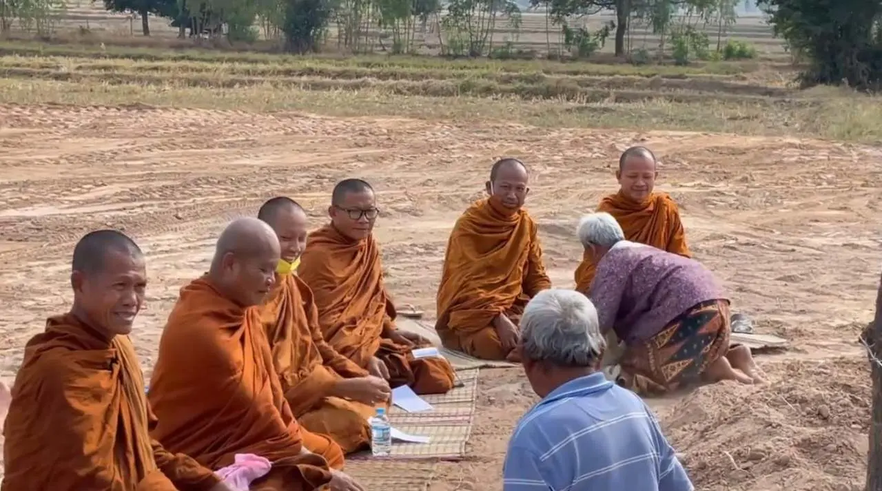 ตา-ยายวัย 80 ปี ทำพิธีถวายที่นาแปลงสุดท้าย เพื่อสร้างวัด