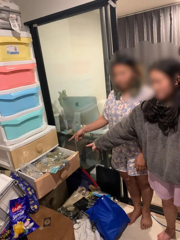 จากนั้นได้ยินยอมให้พาไปตรวจค้นยังห้องพัก เมื่อไปถึงพบผู้ต้องหาอีก 2 คนอยู่ภายในห้องดังกล่าว และตรวจค้นพบของกลางดอกกัญชาสายพันธุ์ต่างประเทศรวม 13 สายพันธุ์ ซึ่งบรรจุอยู่ในภาชนะแบบต่างๆ รวม 46 รายการ ทั้งในรูปแบบของการแปรรูปชนิดต่างๆ เช่น รูปแบบของช็อคโกแลต เพื่อให้เข้าถึงวัยรุ่น หรือเยาวชน น้ำหนักรวมภาชนะ 10.01 กก. และเห็ดเมา 3 รายการ น้ำหนักรวม 60 กรัม