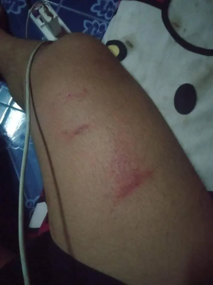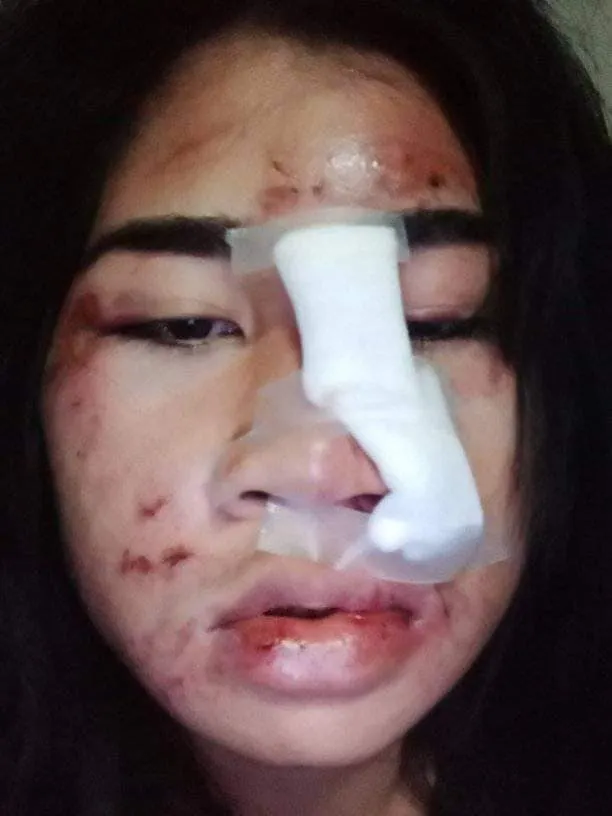 พอเข้ามาในหมู่บ้านได้ มันปะกบข้าง นกตกใจมาก ขับแรงอีกจนเสียหนักชนต้นไม้ พอรถล้มแล้ว มันจอดรถ ลงมาพยายามจะอุ้มขึ้นรถ แต่ขัดขืน มันเลยซ้อม ใส่เข่า ทุบหัวไม่ยั้ง แล้วหนีไป. รถสีดำ เสื้อกันหนาวสีดำ หมวกกันนวกเต็มใบเป็นสี
