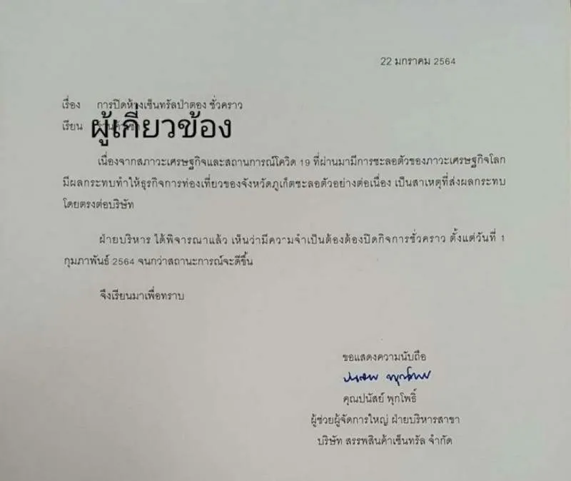 ด่วน เซ็นทรัลป่าตอง ประกาศปิดทำการ ชั่วคราว หลังเจอพิษโควิด