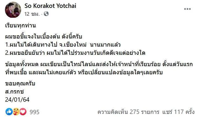 2.ผมขอยืนยันว่า ผมไม่ได้ไปร่วมงานวันเกิดดีเจแต่อย่างใด