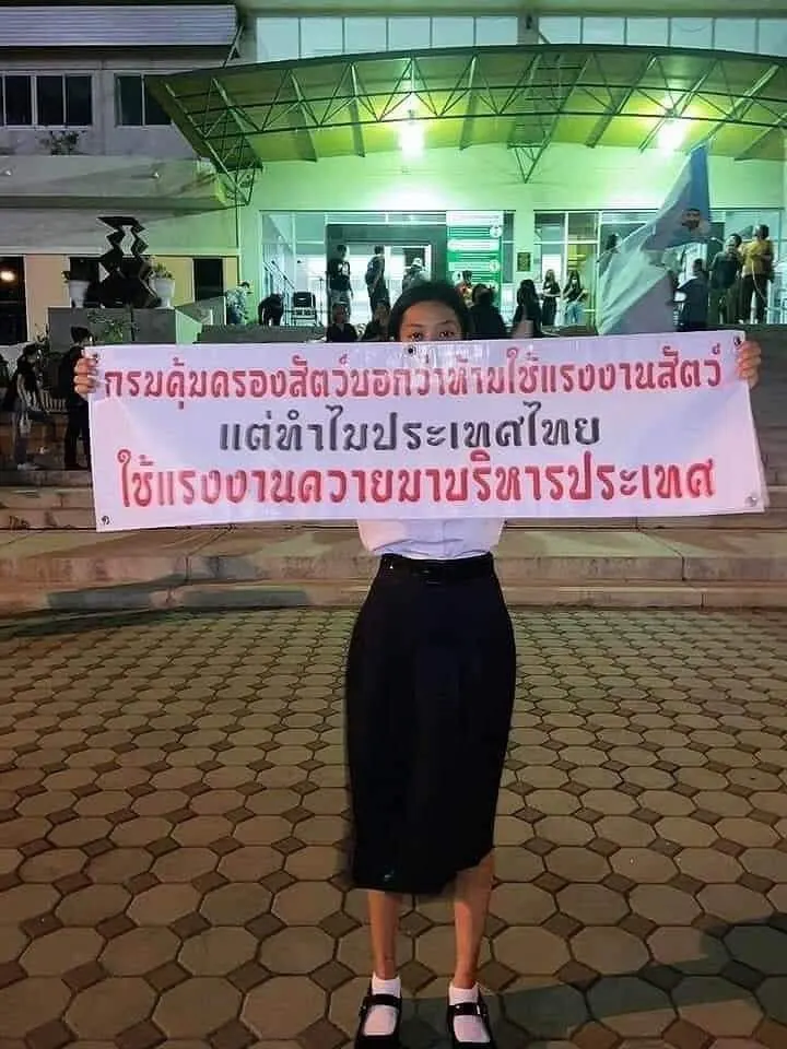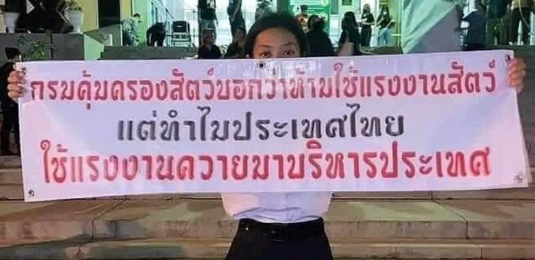 สลิ่ม ทนไม่ไหว!! หลังสาวชูป้ายนี้.. ด่าลั่น! "มีปัญญาทำได้แค่ชูป้ายโง่ๆ"