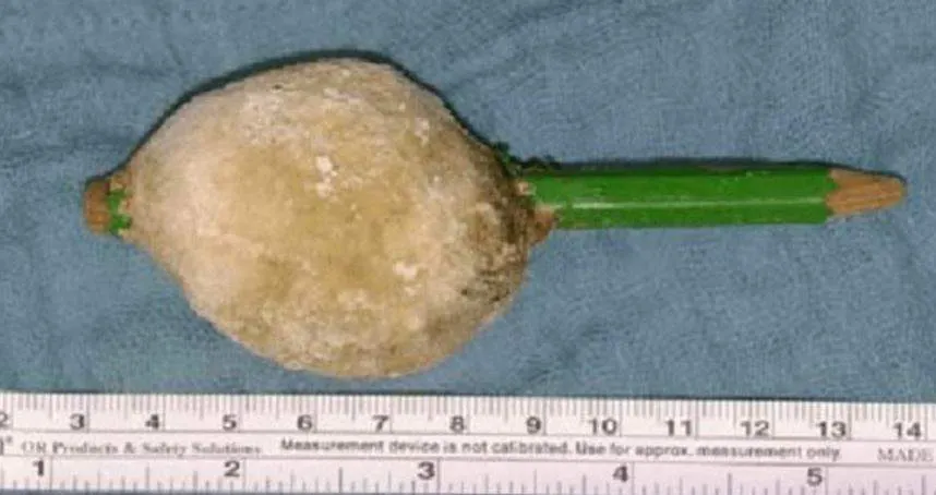 และพบเจ้าดินสอแท่งนี้อยู่ภายในกระเพาะปัสสาวะ!!!
