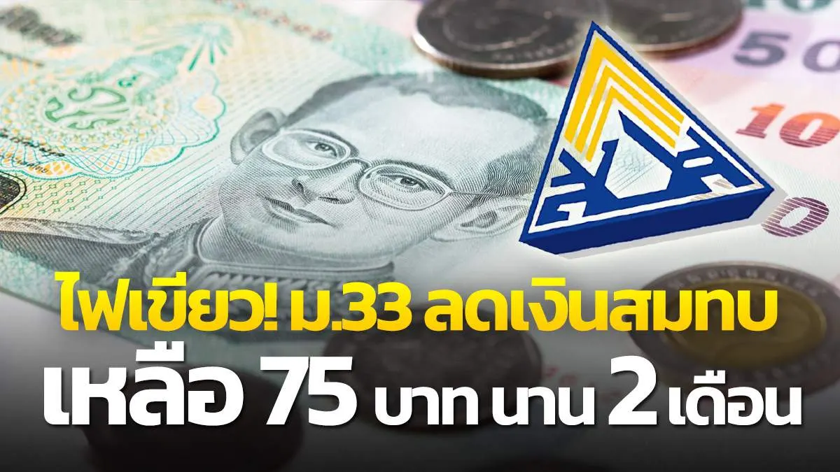 ด่วน "ประกันสังคมมาตรา 33" ลดเงินสมทบเหลือ 75 บาท นาน 2 เดือน ล่าสุด ครม. อนุมัติแล้ว