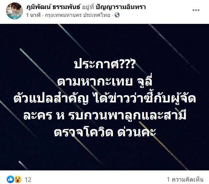 ประกาศ???ตามหากะเทย จูลี่ ตัวแปลสำคัญ ได้ข่าวว่าซี้กับผู้จัดละคร ห รบกวนพาลูกและสามี ตรวจโควิด ด่วนคะ