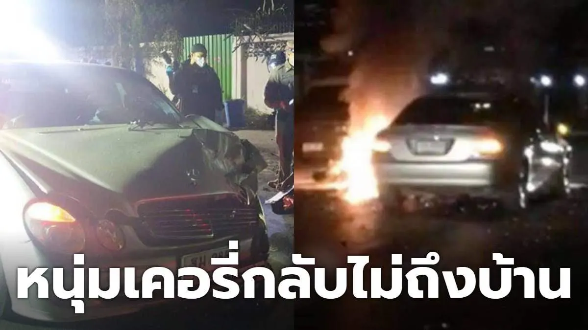 หนุ่มเคอรี่ซิ่งบิ๊กไบค์กลับบ้าน อัดเบนซ์จนไฟลุกท่วม ดับสลด!