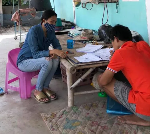การไปดูแลนักเรียนถึงบ้านในช่วงนี้ก็มีแจกใบงาน ตรวจงาน ติวหนังสือ ป้องกัน เว้นระยะห่าง