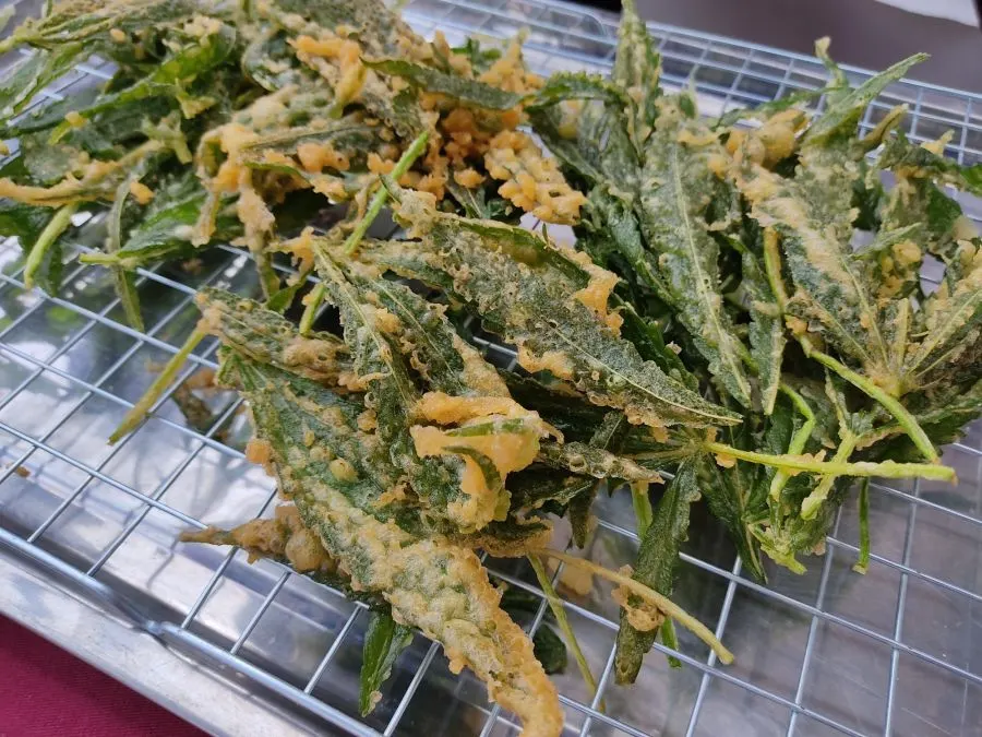 ศูนย์วิจัยและพัฒนาเกษตรธรรมชาติ มหาวิทยาลัยแม่โจ้ สาธิตเมนูตัวอย่างจากใบกัญชา ไข่เจียวกัญชา กัญชาทอดกรอบ และจะมีการเปิดตัวเมนูอื่นจากใบกัญชาเร็วๆนี้