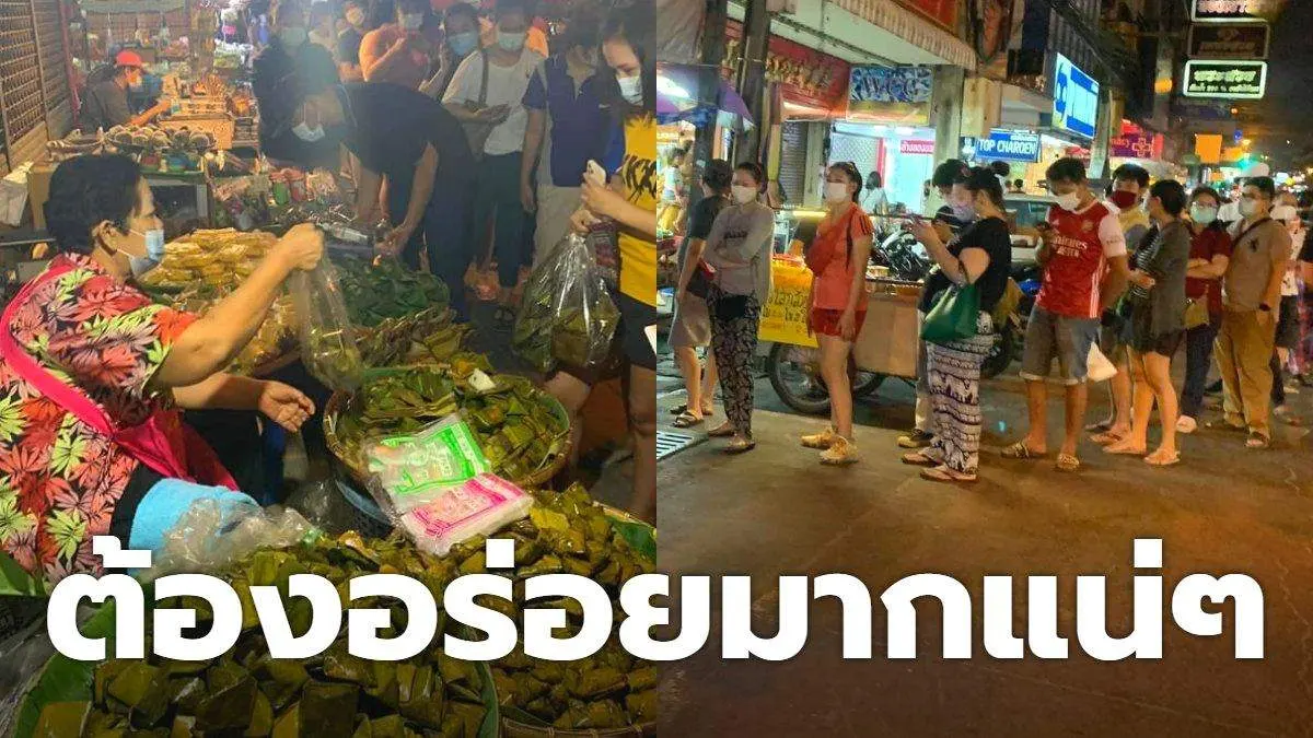 ยาวเหยียด!! คนจำนวนมาก ต่อแถวซื้อขนมคุณยาย