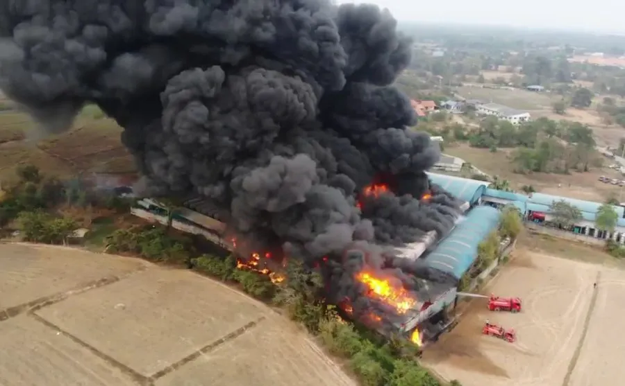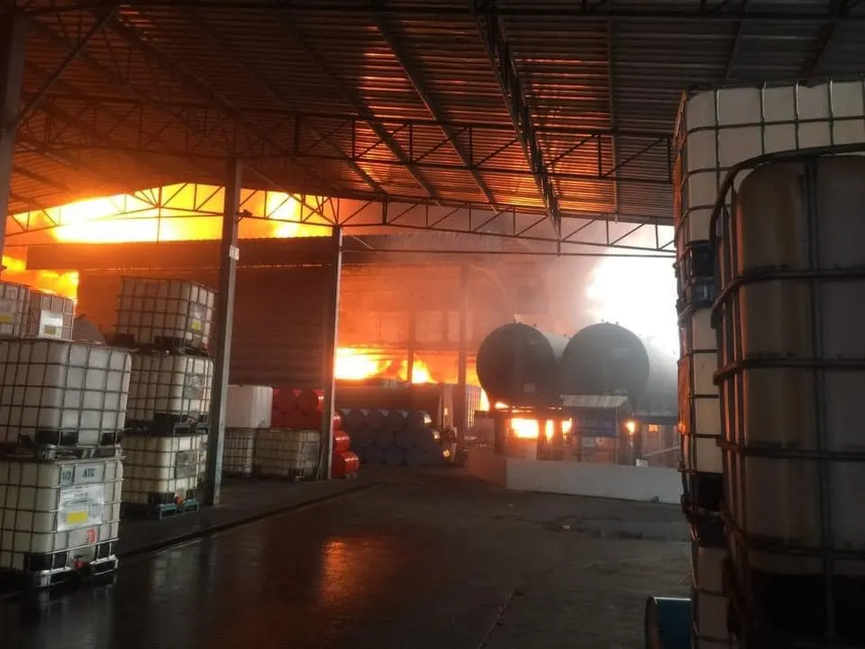 ด่วน! ไฟไหม้โรงงานน้ำมันหล่อลื่น มูลค่าความเสียหายประเมินไม่ได้
