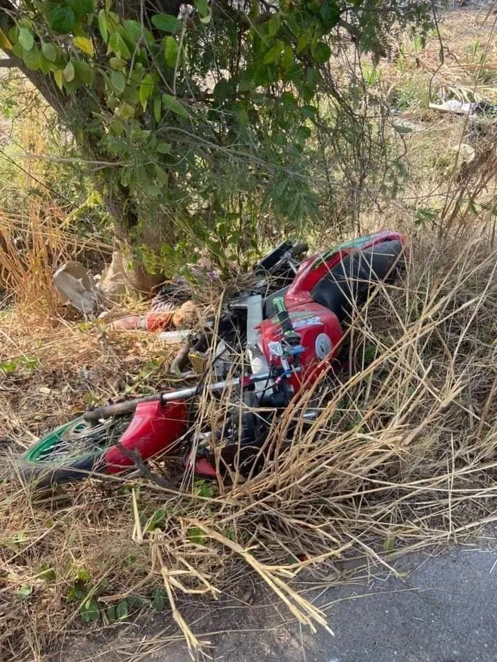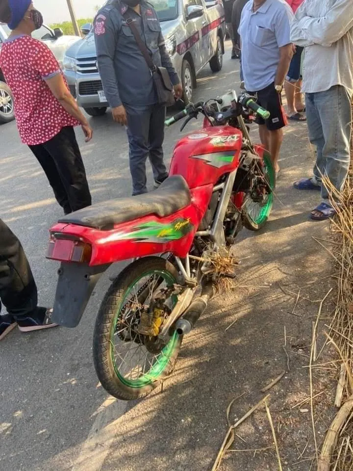 ที่เกิดเหตุ พบจักรยานยนต์ ยี่ห้อฮอนด้า บีท สีแดง ขนาด 110 ซีซี ไม่ติดแผ่นป้ายทะเบียน ล้มอยู่ข้างทางในสภาพเสียหายเล็กน้อย ใกล้กัน #พบศพของ เด็กชายณัฏฐพล อ้ายโป่ง อายุ 12 ปี สวมกางเกงกีฬาขาสั้น เสื้อยืดลายคอกลม #นอนหงายเสียชีวิตอยู่ข้างต้นไม้ริมทาง สภาพคางแตก-คอหัก ข้อขาซ้ายเป็นแผลเหวอะหวะ โดยมีญาติและชาวบ้าน และเพื่อนผู้ตายมุงดูด้วยความสลด