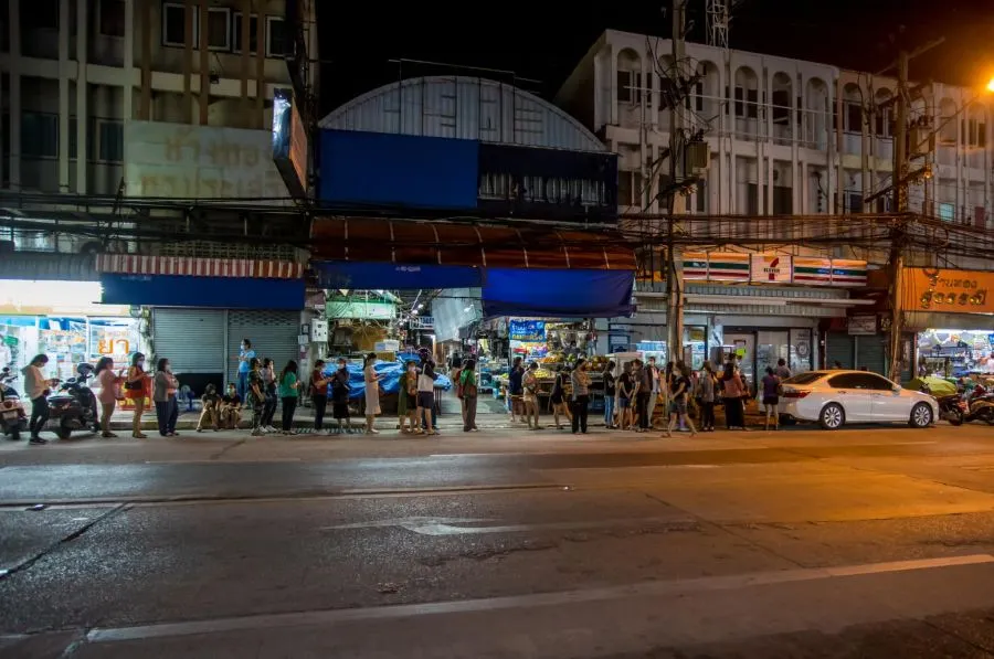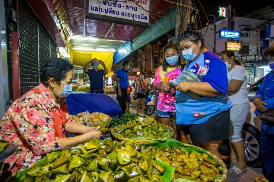 พัทยาคึกคักคนแห่ซื้อขนมไทยยายป๋อง ต่อคิวยาวขายหมดเกลี้ยงภายใน 1 ชั่วโมง คิวแรกมารอตั้งแต่ 4 โมงเย็น ก่อนเปิดขาย 1 ทุ่ม