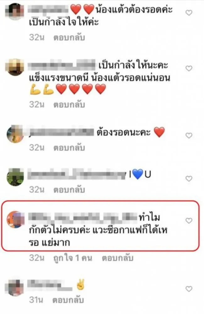 แฟนๆ เข้ามาคอมเมนต์ว่า //เอารูปไปเลี่ยมทองแล้วห้อยคอ, ปังมาก ต้องรอดๆ , รอดแน่เจ้าแม่บำเพ็ญเพียรมาเป็นพันๆปี หยอกๆนะค่ะ สู้ๆ, พลังเจ้าแม่นาคี, ตกน้ำไม่ไหล ตกไฟไม่ไหม้ครับ :), พี่แต้วรอดแล้วววว มงลงนะพี่, #แต้วต้องรอด เจ้าแม่นาคี, เตรียมบูชา, เห็นผลแล้วชื่นใจ เจ็บแย่ เป็นกำลังใจให้ครับ ฯลฯ