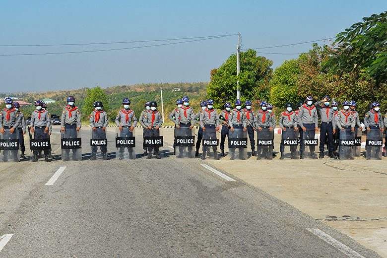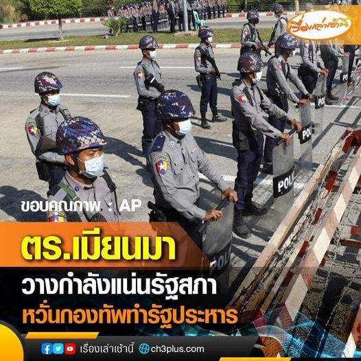 ต.รพม่าวางกำลังแน่นหน้ารัฐสภา ป้องกันทหารพม่าทำรัฐประหาร