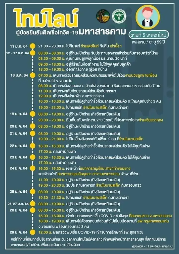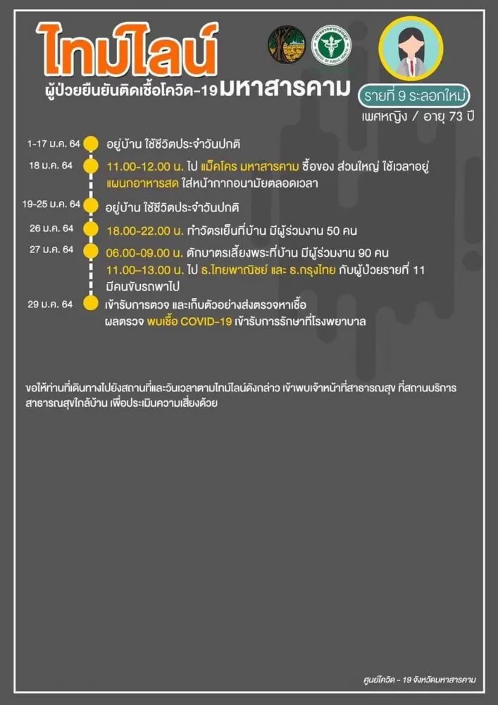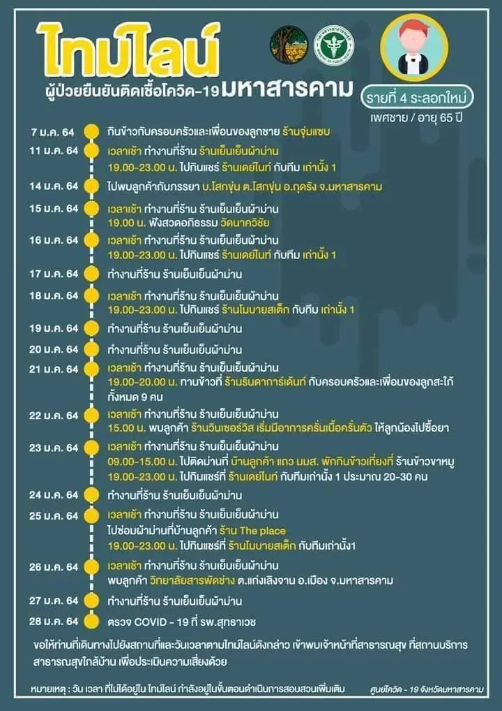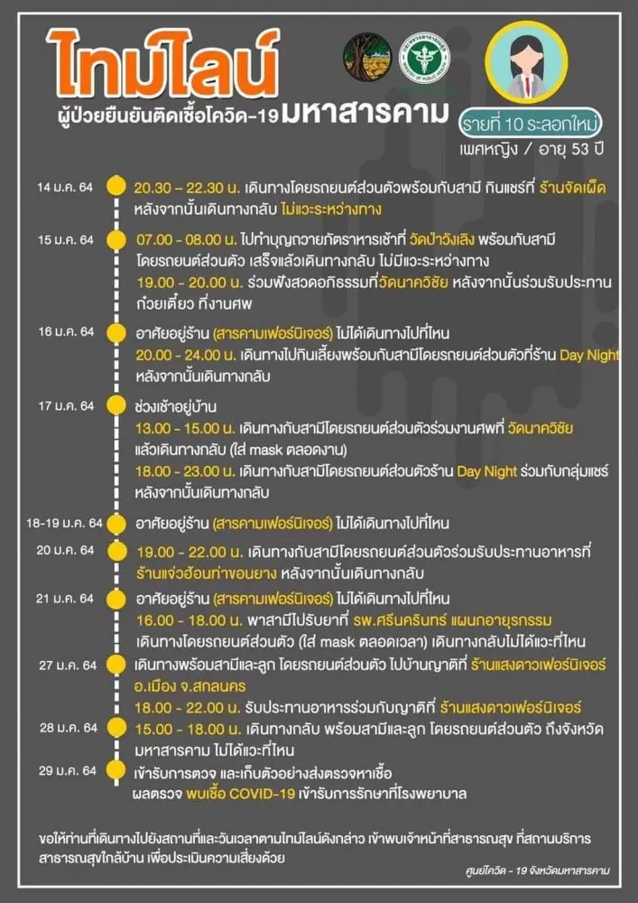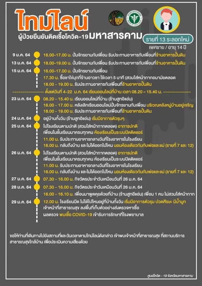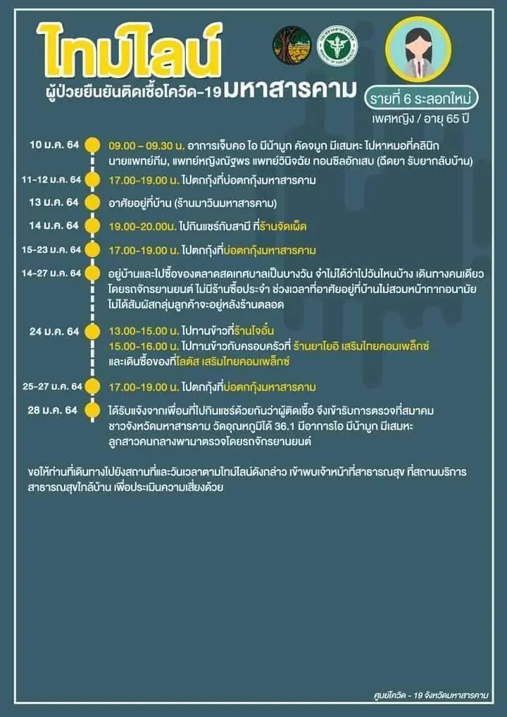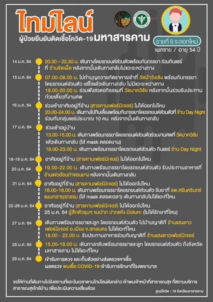 [ประกาศ] ไทมไลน์ผู้ป่วยยืนยันติดเชื้อโควิด-19 จังหวัดมหาสารคาม