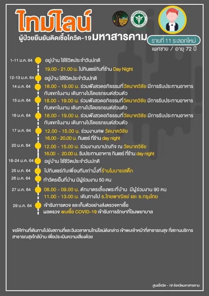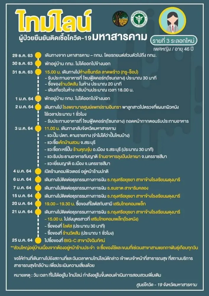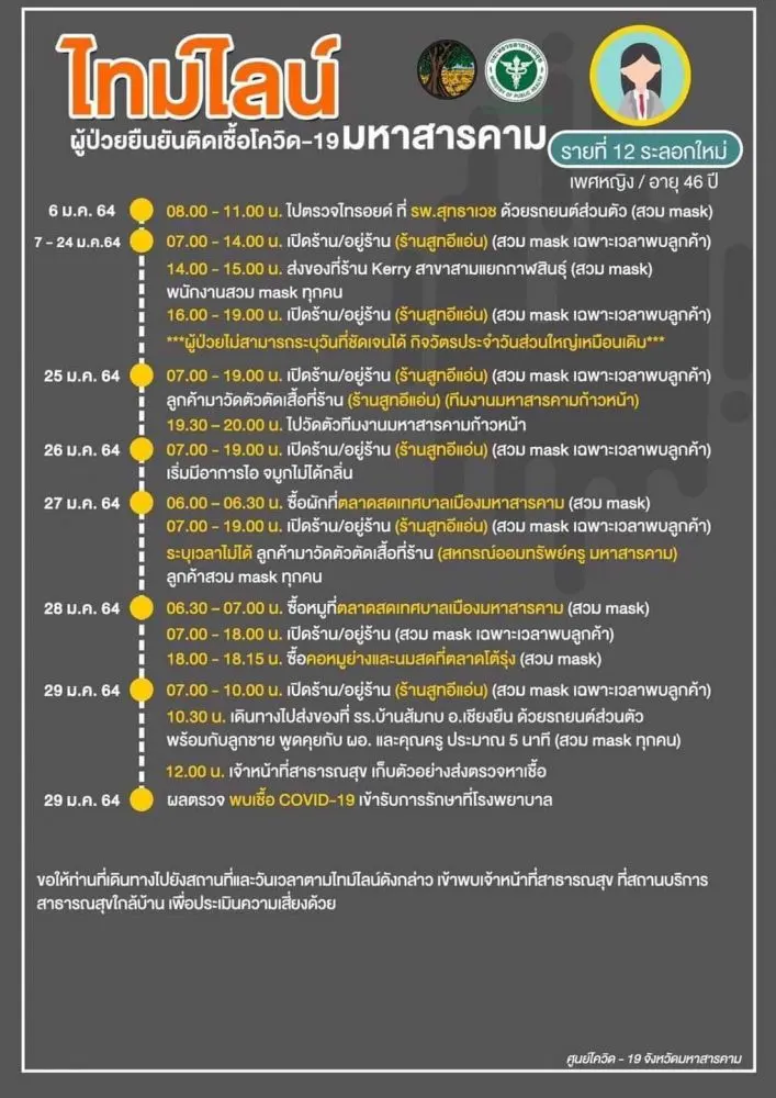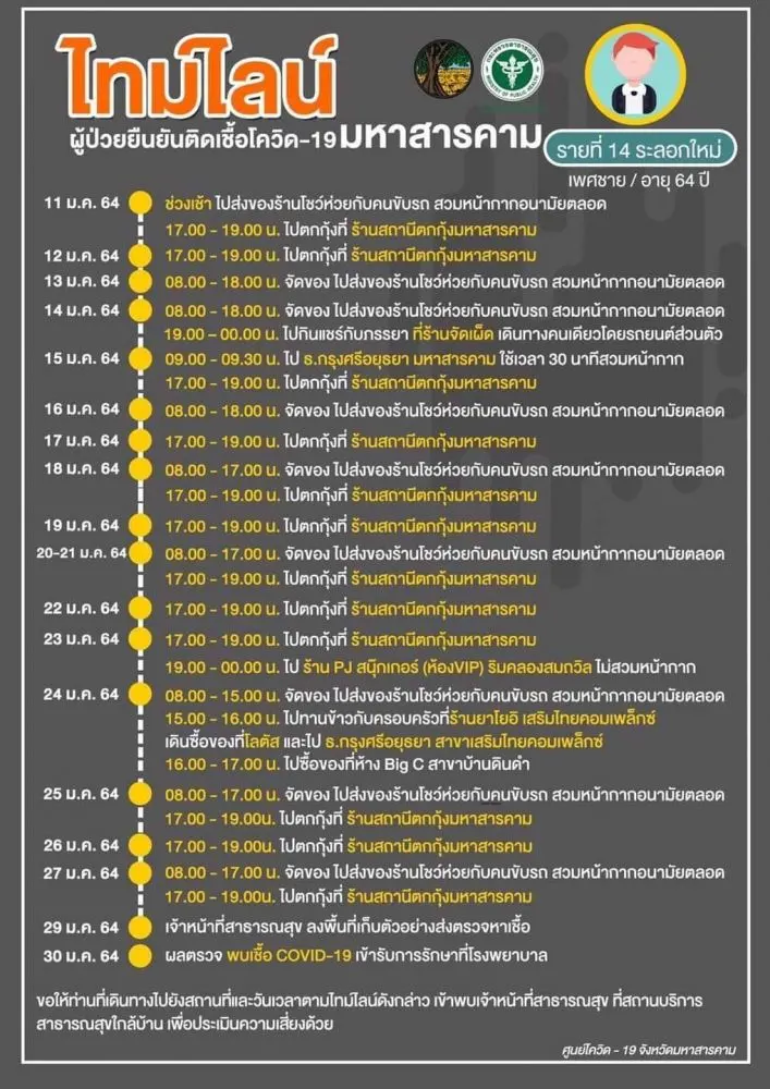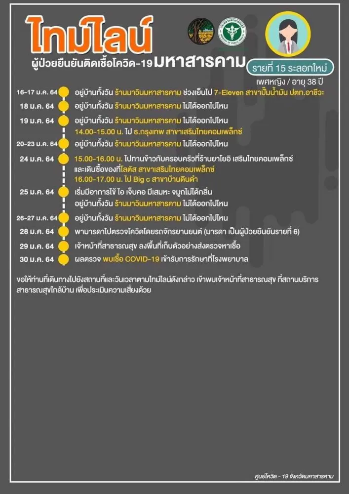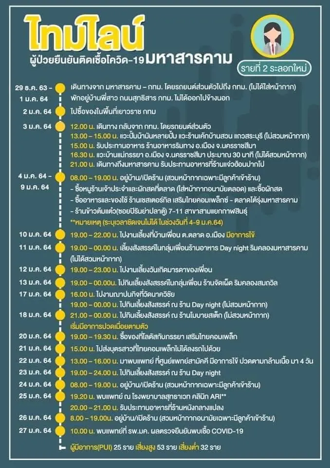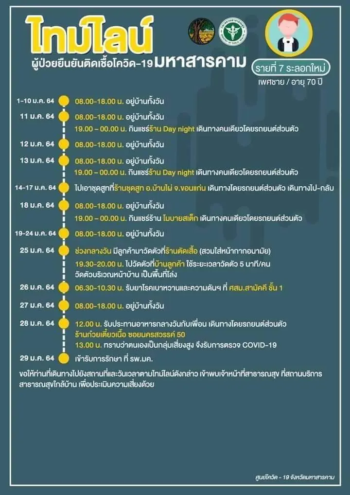 [ประกาศ] ไทมไลน์ผู้ป่วยยืนยันติดเชื้อโควิด-19 จังหวัดมหาสารคาม