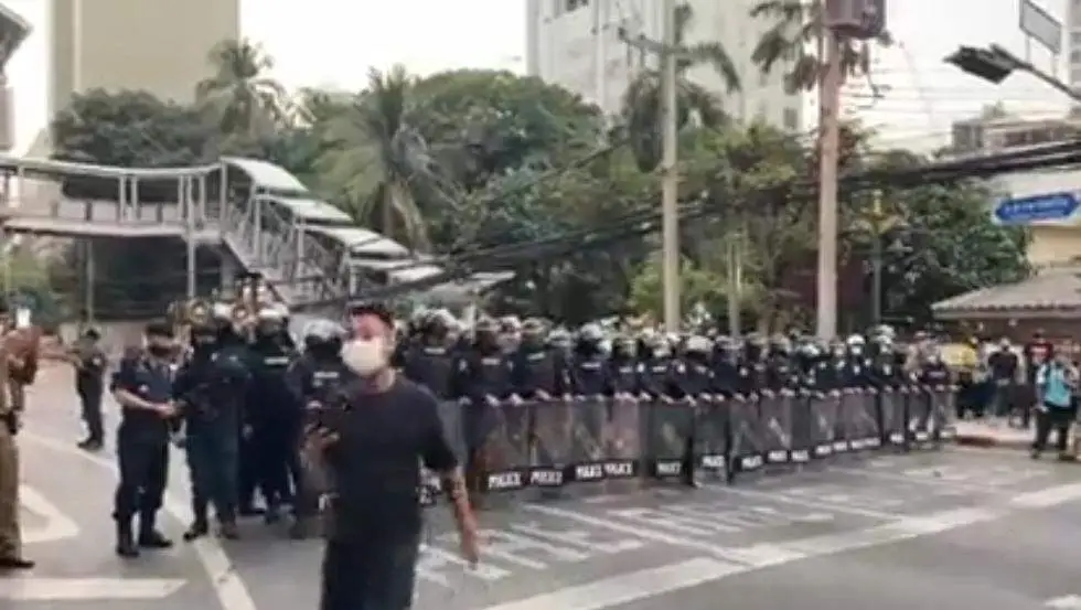 ชาวเมียนมาในประเทศไทย ประท้วงรัฐประหารหน้าสถานทูต