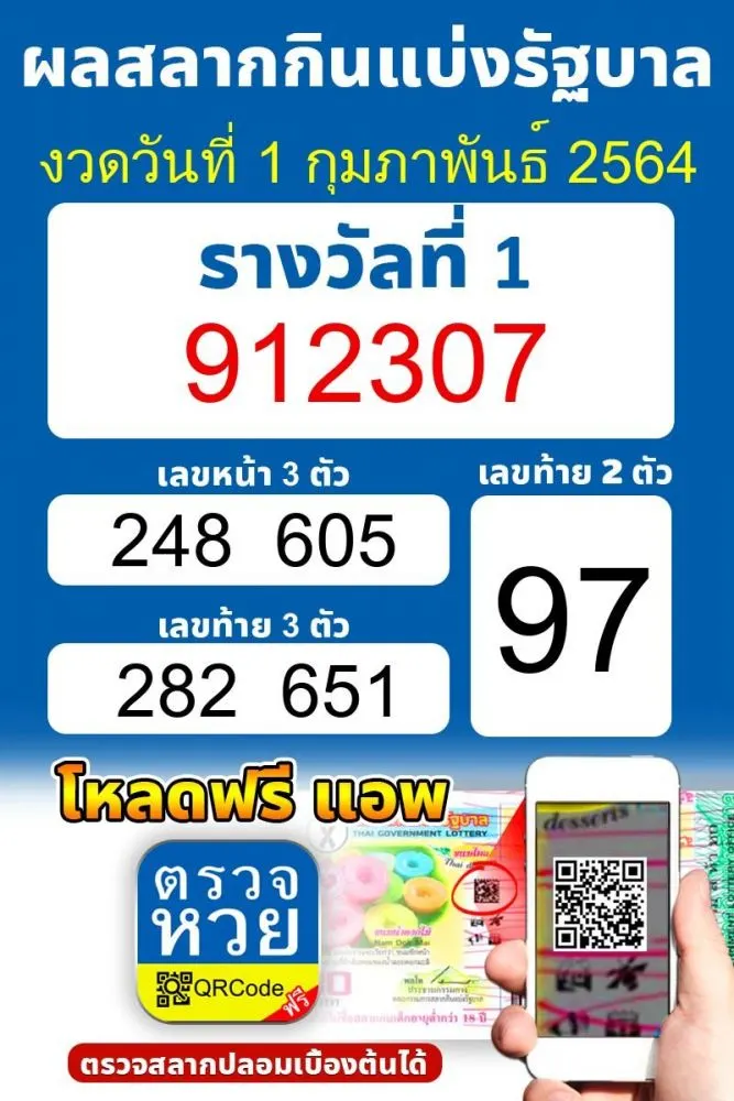 สำหรับผู้โชคดีดวงเฮงได้งวดนี้ รางวัลที่1ไปอยู่ที่ อ.แม่สอด จ.ตาก โดยผู้ถูกรางวัลที่ 1 รับไปเต็มๆ 12 ล้านบาท โดยมีรายงานว่าวันที่ 1 กุมภาพันธ์ 2564 นายธวัชชัย อ่อนสาร ปลัดป้องกัน(ป.ป้องกัน) อ.แม่สอด จ.ตาก เป็นอีกคนที่ดวงดีถูกลอตเตอรี่ ซื้อเลข 912307 ถูกรางวัลที่1 รับ 12 ล้าน ขอร่วมเเสดงความยินดีกับปลัดนักปกครอง