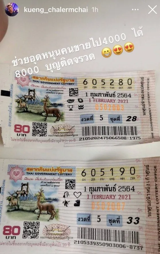 กึ้ง-เฉลิมชัย เจ้าตัวบอกว่า อุดหนุน แม่ค้าไป 4,000 ได้บุญติดจรวด มา 8,000 ถือว่าเป็นผู้โชคดีในงวดนี้จ๊า ใครถูกบ้างบอกเจ๊หน่อย เจ๊ก็ถูก....ถูกแดกเรียบ55555