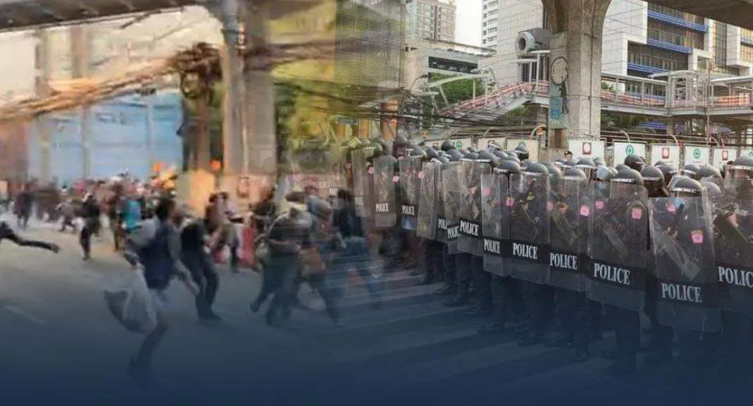 ตำรวจ 9 นายบาดเจ็บ เหตุชุลมุนหน้าสถานทูตเมียนมา 2 นายต้องแอดมิท เยื่อแก้วหูฉีกขาด ใต้เข่าขวาฉีก แผลเปิด!!