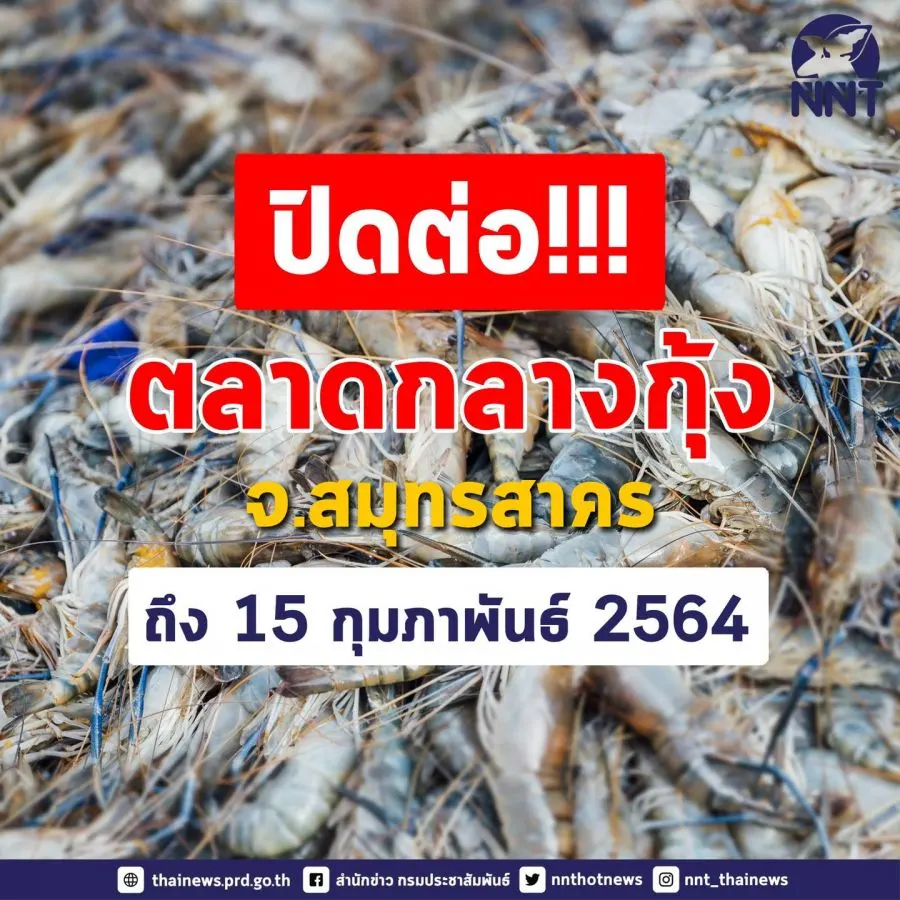 ปิดต่อ!! ตลาดกลางกุ้งสมุทรสาคร สั่งปิดต่อถึง 15 ก.พ.นี้ เหตุสถานที่ยังไม่พร้อม