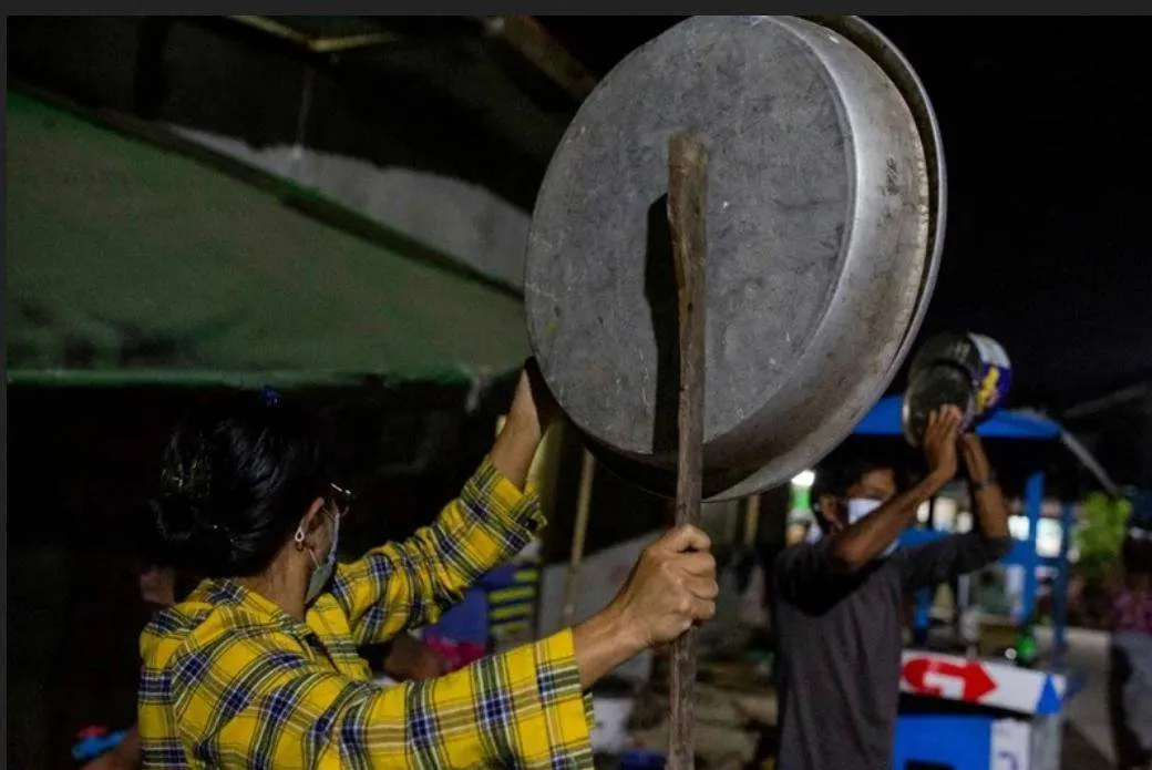 ดูพลังและความคลั่งแค้นที่ประชาชนชาวพม่ากระหน่ำใส่หม้อ ใส่ถ้วยชามที่เอามาตีเพื่อต้านรัฐประหารเมื่อคืนนี้