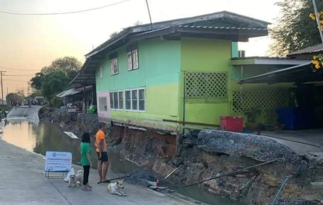 เมื่อเวลา 17.30 น. วันที่ 3 กุมภาพันธ์ 2564 ผู้สื่อข่าวได้รับแจ้งจากชาวบ้านที่พักอาศัยอยู่ในชุมชนบ้านคลองมอญ ข้างวัดใหม่ปากคลองมอญ หมู่ที่ 7 ตำบลศีรษะจระเข้น้อย อำเภอบางเสาธง จังหวัดสมุทรปราการ ว่าถนนคอนกรีตของหมู่บ้านเลียบคลองทับยาว ได้เกิดทรุดตัวลึกลงไปกว่า 2 เมตร พังเสียหายอย่างหนักเป็นทางกว่า 150 เมตร ส่งส่งน้ำประปาแตกดินเลนในพื้นถนนทะลักลงไปอยู่ในคลอง จึงเดินทางเข้าตรวจสอบพบว่า ที่เกิดเหตุเป็นหมู่บ้านชุมชนปากคลองมอญ และเป็นถนนคอนกรีตสายหลักที่ชาวบ้านใช้สัญจรเข้าออกหมู่บ้าน พังเสียหาย ทำให้ท่อประปาซึ่งเป็นท่อเมนที่ส่งน้ำเข้าหมู่บ้านหลายครัวเรือนแตกจนมีน้ำท่วมขังสูง ชาวบ้านต้องนำเครื่องสูบน้ำมาเร่งสูบน้ำออก เพื่อป้องกันไม่ให้ เกิดการทรุดตัวมากไปกว่านี้ ขณะที่บรรดาเด็กในหมู่บ้านต่างพากันมาเล่นน้ำในที่เกิดเหตุอย่างสนุกสนาน โดยมีดินเลนใต้พื้นถนนไหลทะลักไปอยู่คลองซึ่งเป็นคลองทับยาว ที่เป็นลำคลองเชื่อมต่อรับน้ำจากลาดกระบังและคลองประเวศบุรีรมย์