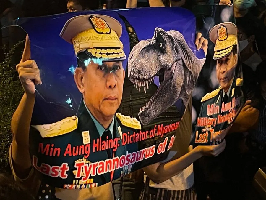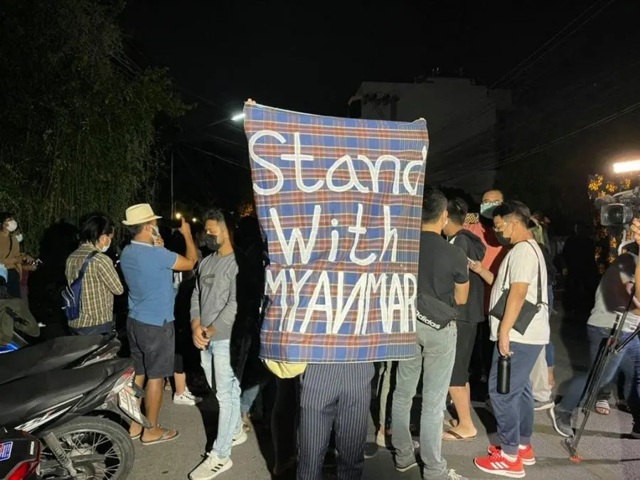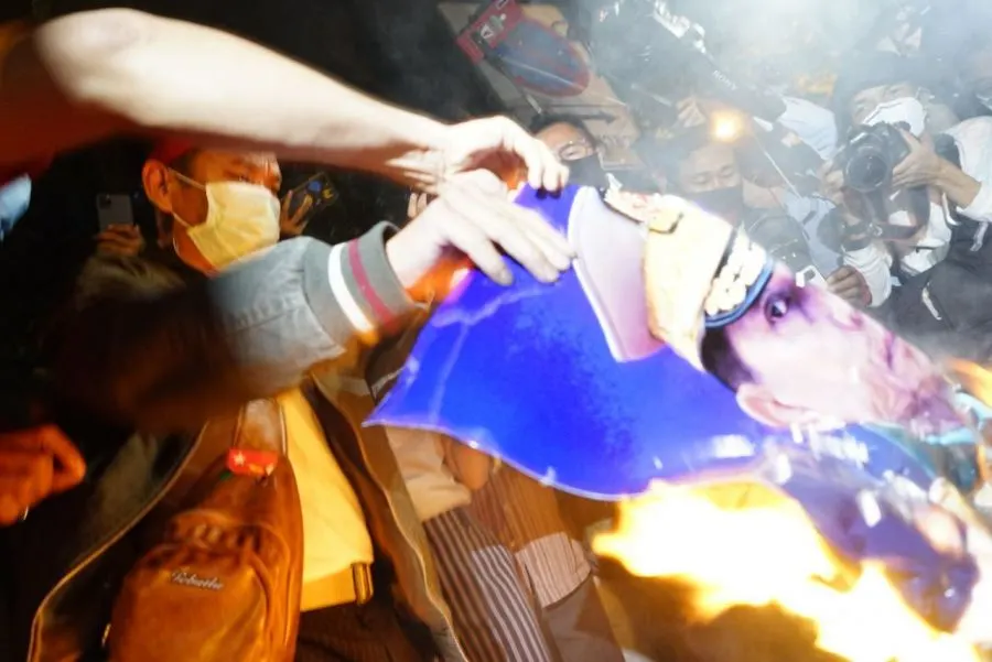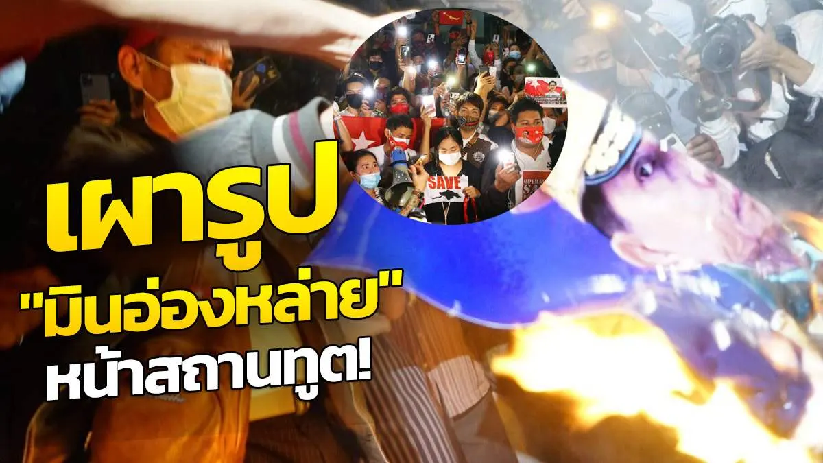 เผารูป "มินอ่องหล่าย" หน้าสถานทูต!
