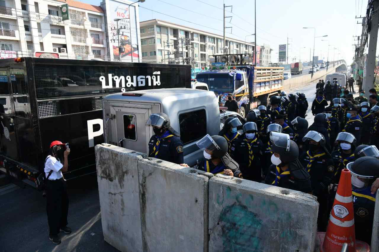 สภ.คลองหลวงและบริเวณโดยรอบ เจ้าหน้าที่ตำรวจ ควบคุมฝูงชน ตรึงกำลังแน่น เอารถฉีดน้ำแรงดันสูงมาจอด ปิดถนนปดการจราจร เอารถตำรวจเอาแบริเออร์มาปิดทางสัญจร ปิดทางขึ้นสะพานลอย ประชาชนแถวนั้นเดือดร้อน ทั้งที่วันนี้แค่นักศึกษานักกิจกรรม 21 คน จะไปรายงานตัวรับทราบข้อกล่าวหาจากกรณีที่มาชุมนุมทำกิจกรรมตอนเพื่อนถูกจับและหาตัวกันไม่เจอเมื่อวันที่ 15 ตค.