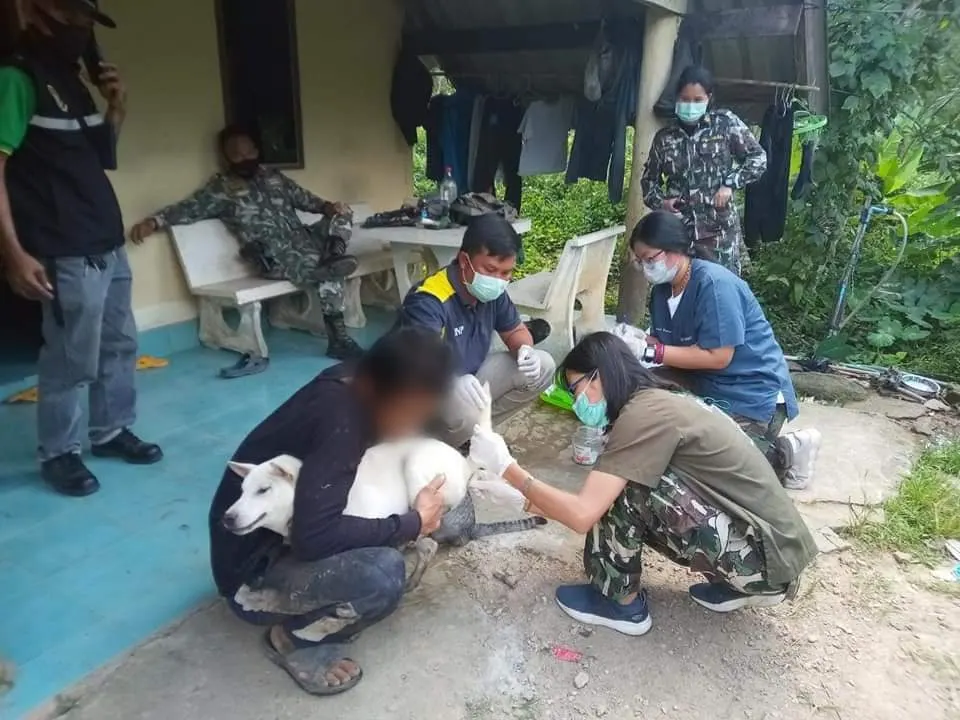 ในการตรวจสอบครั้งนี้ สัตวแพทย์ ประจำ สบอ.5 (นครศรีธรรมราช) ได้เก็บตัวอย่างเลือดและน้ำลายสุนัขเพื่อตรวจหาเชื้อโรคติดต่อ ที่อาจติดมาจากตัวนิ่ม หรือลิ่น