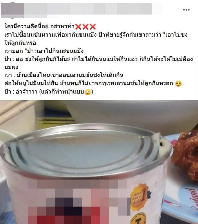 เมื่อป้าข้างบ้านบอก ให้เอา "นมข้นหวาน" ชงให้ลูกกิน