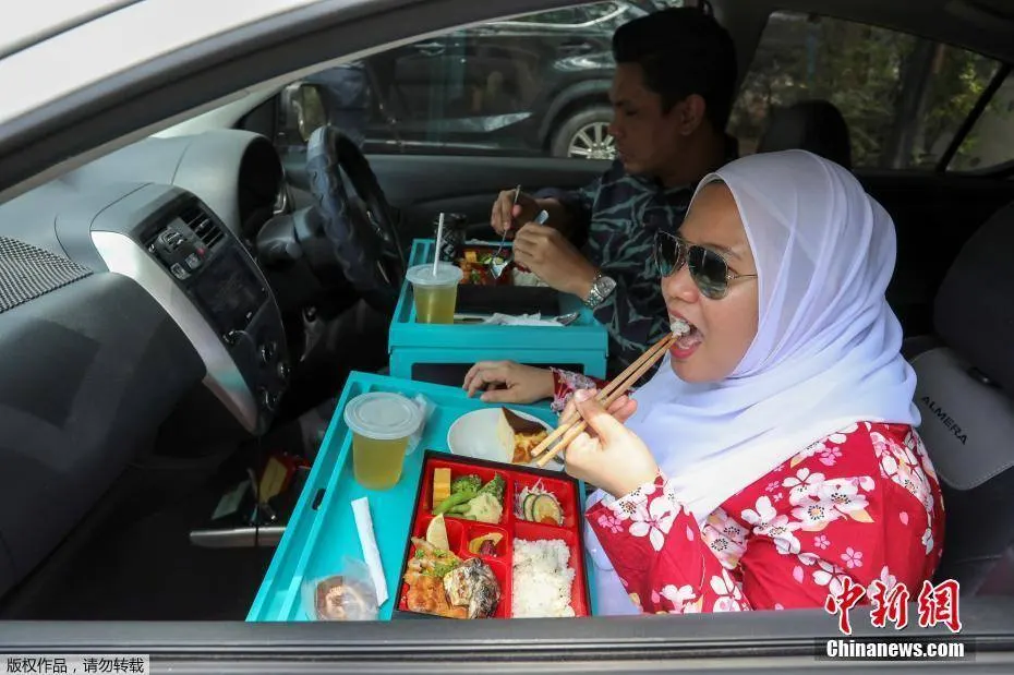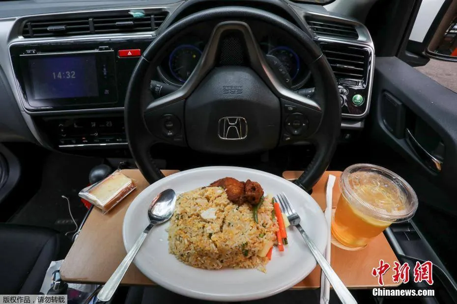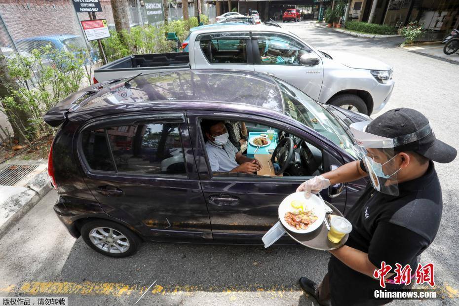ร้านอาหารในไซเบอร์จายา มาเลเซีย ปรับตัวช่วงโควิด19 ให้ลูกค้าสั่งอาหารแล้วทางร้านจะไปเสริฟพร้อมโต๊ะให้ทานบนรถ