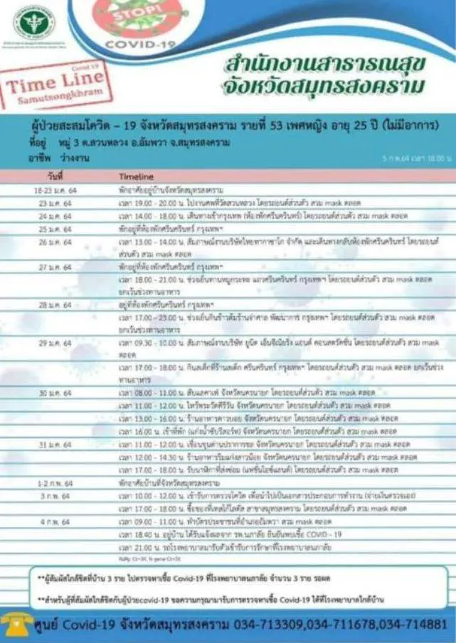4 ก.พ. เวลา 9.00-11.00 น. ทำบัตรประชาชนที่ อ.อัมพวา เวลา 18.40 น. อยู่บ้านได้รับแจ้งผลจาก รพ.นภาลัย ยืนยันว่าพบเชื้อ โควิด-19