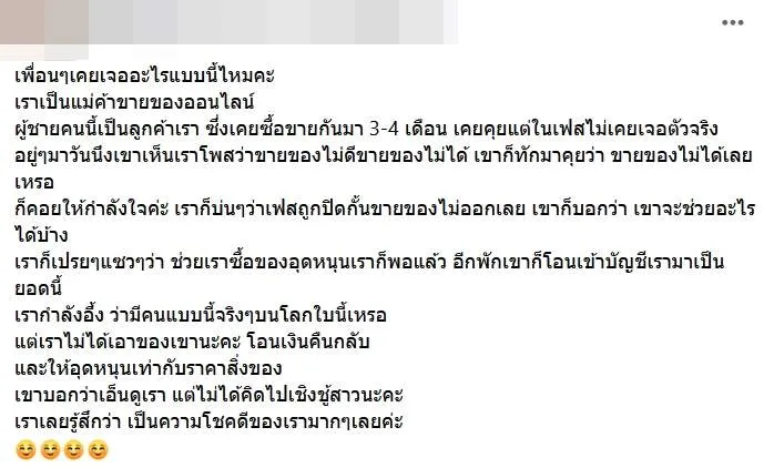 เราก็เปรยๆแซวๆว่า ช่วยเราซื้อของอุดหนุนเราก็พอแล้ว อีกพักเขาก็โอนเข้าบัญชีเรามาเป็นยอดนี้