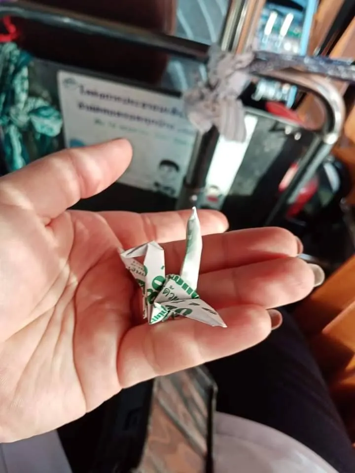 น้องขึ้นมากับแม่เค้าเราไม่ได้เก็บเงินน้องเพราะว่าน้องนั่งตักแม่เค้า ก่อนลงน้องยื่นนกกระดาษมาให้บอกว่าหนูพับนกให้น้านะครับ แล้วก้อบอกขอบคุณครับที่ไม่เก็บเงินหนู
