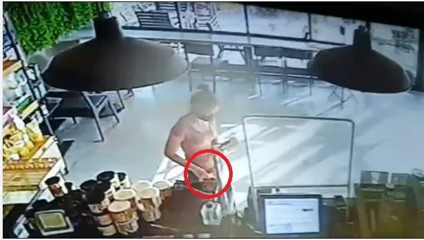 คนร้าย..ผู้หญิง (ตามคลิป) ตั้งใจหยิบกระเป๋าที่วางลืมบนชั้นขนมใส่กระเป๋าตัวเอง แล้วเดินออกจากร้านไปอย่างเนียนๆ มากับรถขนส่งตู้ทึบ ทะเบียนลงท้าย **209