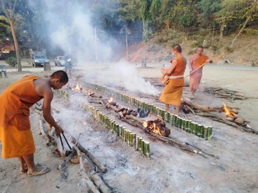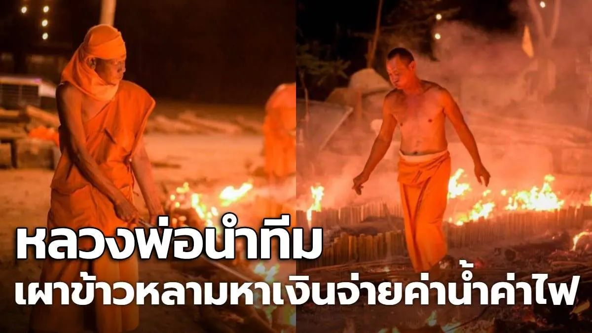 หลวงพ่อลุยเอง!!! เผาข้าวหลามหาเงินจ่ายค่าน้ำค่าไฟ