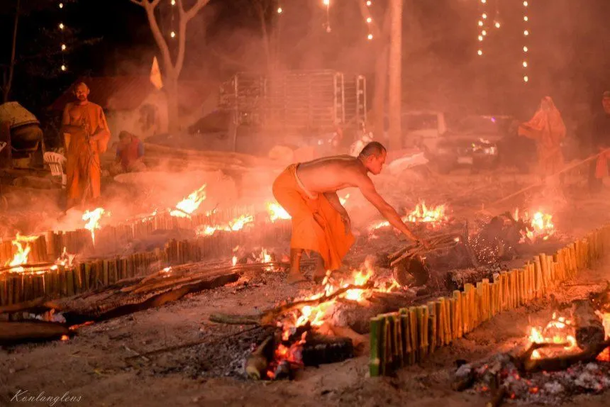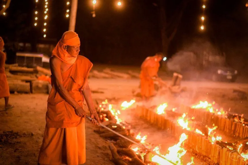 เรื่องราวนี้บอกเล่าโดยผู้ใช้เฟซบุ๊กชื่อ Verawat Tangyai หรือหลวงพี่เจดำ พระลูกวัดเขาพรหมชะแง้ ต.ถ้ารงค์ อ. บ้านลาด จ.เพชรบุรี ได้โพสภาพพระสงฆ์หลายรูป ที่กำลังร่วมกันเผาข้าวหลามในช่วงเวลากลางคืน