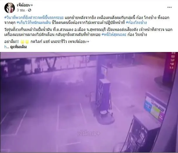 วัยรุ่นตั้งวงกินเหล้าในปั้มน้ำมัน ที่.ต.สวนแตง อ.เมือง จ.สุพรรณบุรี เปิดเพลงส่งเสียงดัง เจ้าหน้าทีตำรวจ นอกเครื่องแบบผ่านมาลงไปตักเตือน กลับถูกยิงสวนดับที่ท้ายทอย #หนีให้สุดนะคะ ก้อง โรงช้าง