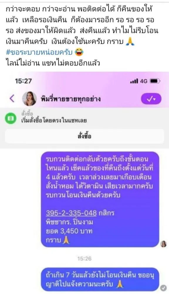 "พิมรี่พาย" งานเข้า เจอดราม่า ลูกค้าสุดจะทน ตั้งกรุ๊ปรวมตัวโวย หลังสั่งของเป็นเดือน โอนเงินแล้วแต่ยังไม่ได้ของสักที แชตไปก็ไม่มีใครตอบ ลั่นจะไปแจ้งความแล้ว