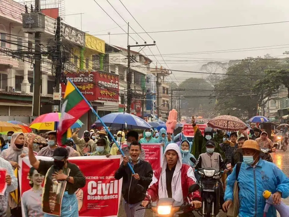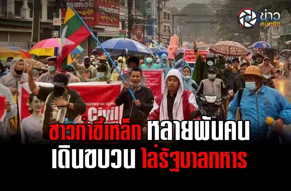 เชียงราย ชาวท่าขี้เหล็กหลายพันคนเดินขบวนไล่รัฐบาลทหาร ผู้ประกอบการระงับส่งสินค้าไปท่าขี้เหล็ก