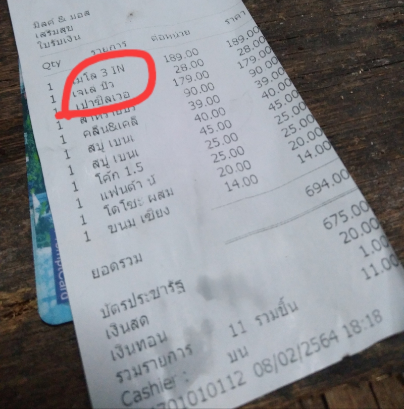 ตอนแรกก็คิดว่าที่ร้านแอบขึ้นราคาของ ดีนะที่พนักงานให้ใบเสร็จมา ดีนะที่ไม่ทิ้งใบเสร็จ กลับถึงบ้านเอาออกมาดู #3รายการที่วงไว้คือสินค้าที่เราไม่ได้ซื้อ แต่มาได้ยังไงเท่ากับเราเสียเงินไปฟรีๆแต่ไม่ได้ของ เท่ากับเราเสียเงินในบัตรไป396ไปฟรีๆกับสินค้าล่องหน หรือพนักงานไม่ได้ลบสินค้าของลูกค้าคนก่อนหน้าแล้วมันคีย์ขึ้นในใบเสร็จเรา #เป็นไปได้เหรอ??พรุ่งนี้เจอกันค่ะ เพราะเราโดนโกง ที่ร้านมีกล้องวงจรปิดพอดีเช็คให้รุ้กันไปเลย #ถ้าไม่บอกว่ากล้องเสียนะ เตือนภัยนะคะ ระวังกันด้วย สถานการณ์แบบนี้ คนไทยไม่ควรเอารัดเอาเปรียบกัน